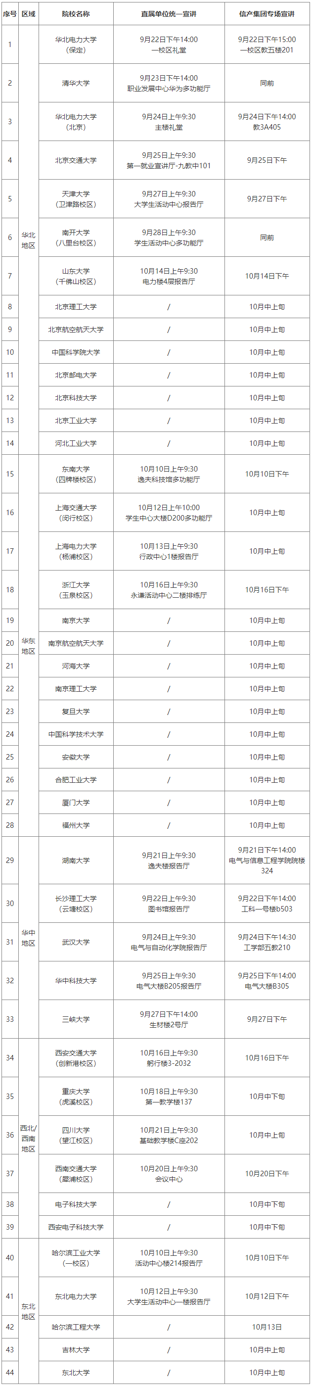 備注:1.按院校所在地及宣講時間排序,時間、地點動態更新。