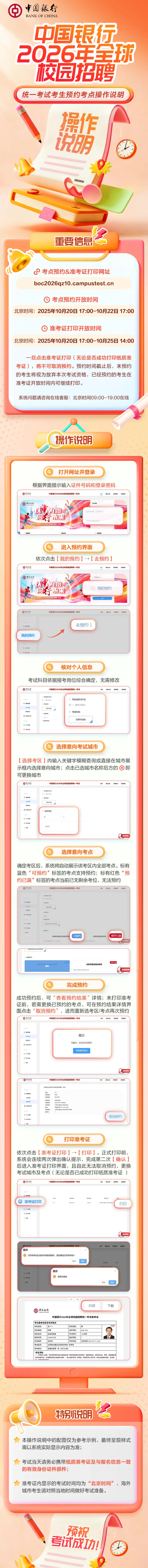 中國銀行2026年全球校園招聘統一考試考生預約考點操作說明