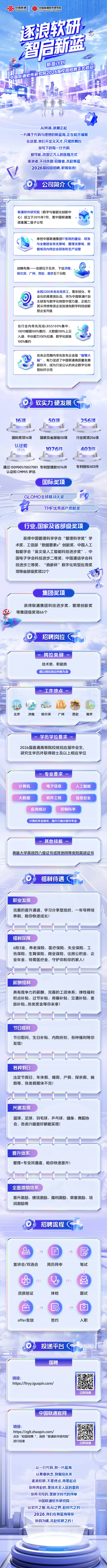 中國聯通軟件研究院2026屆校園招聘