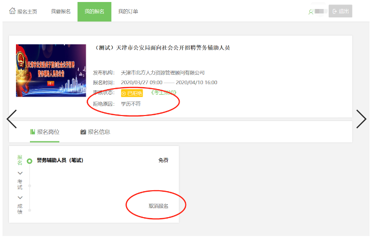 八、應聘者成功提交報名后,進入初審狀態。查詢審核結果,請再次登錄系統查看“我的報名”