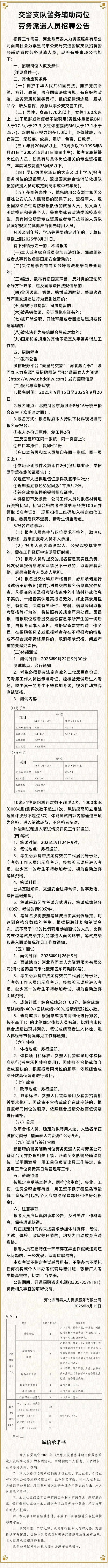 河北邢臺市公安局2025年度公開招聘警務輔助人員公告(第二批)